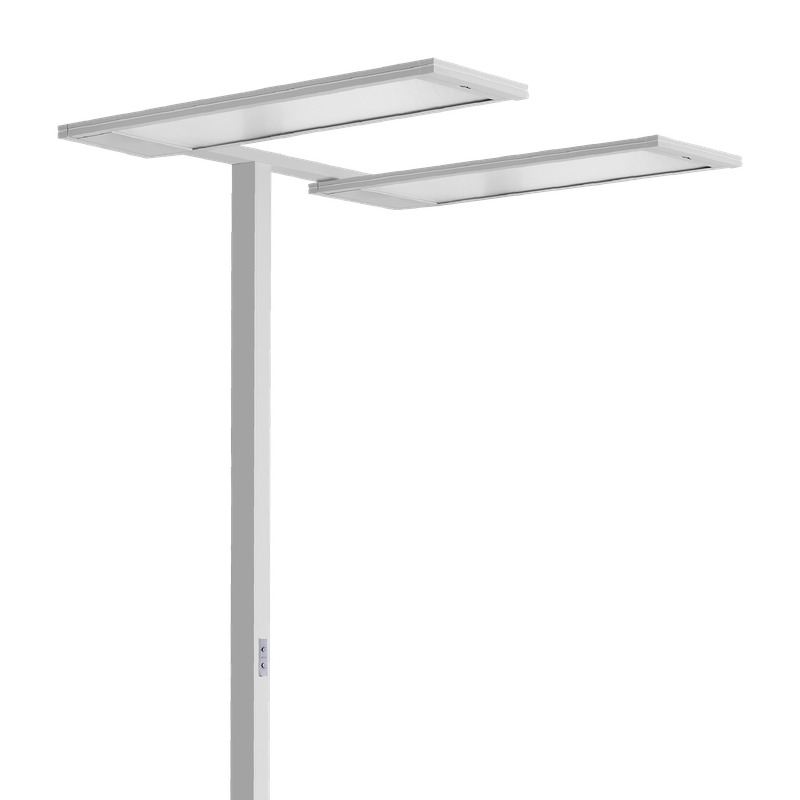 • Lámpara de pie LED de doble cabezal para interiores, compuesta de:
