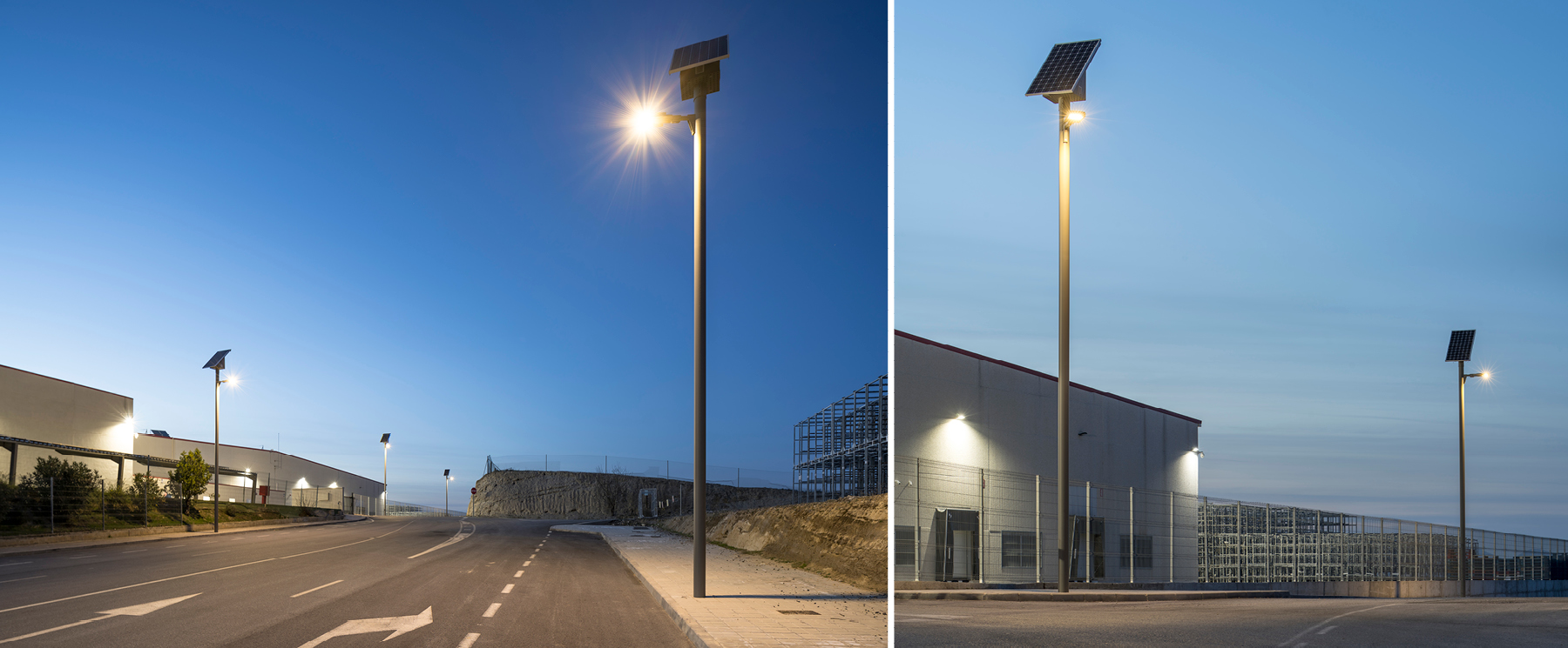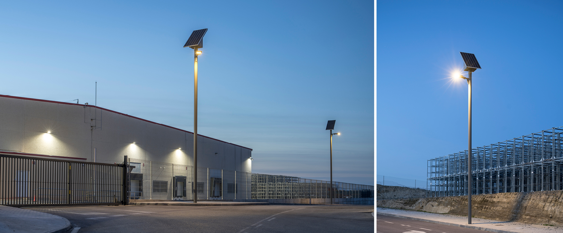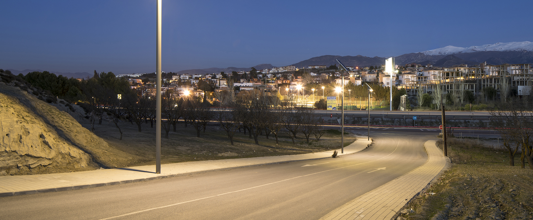 In the municipality of Otura, within the Granada metropolitan area, along one of the main access routes to the newly developed industrial areas, a street lighting project has been implemented to serve a road infrastructure still in a phase of consolidation. The context is characterised by wide carriageways, recently developed plots, industrial production buildings and long road sections that are still evolving, where system reliability and autonomy are essential requirements to ensure effective and continuous lighting.