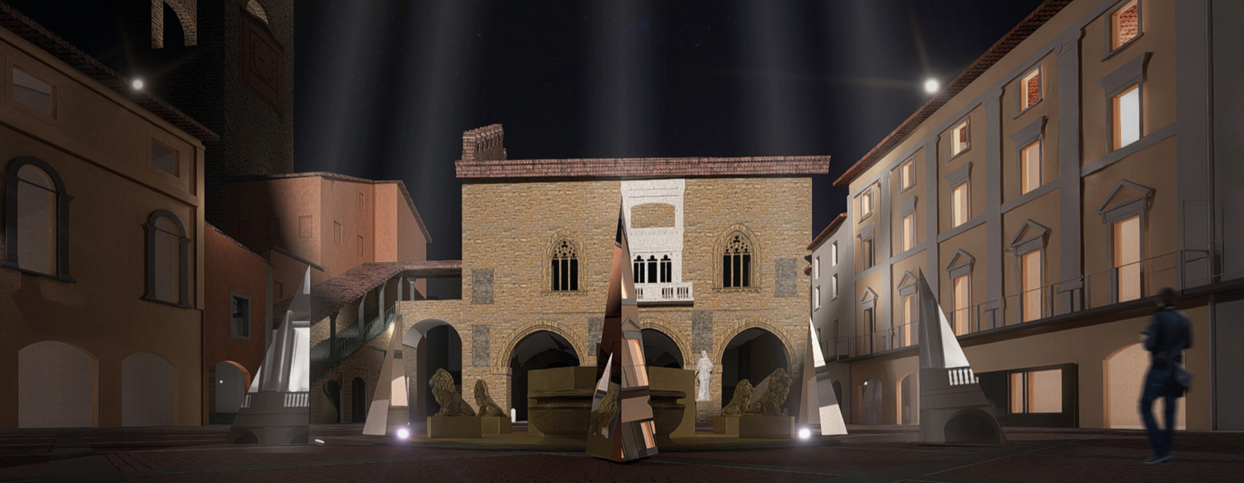 Each movement has been commissioned by a different company and is displayed respectively in Piazza della Cittadella, Piazza Mascheroni, and Piazza Vecchia.