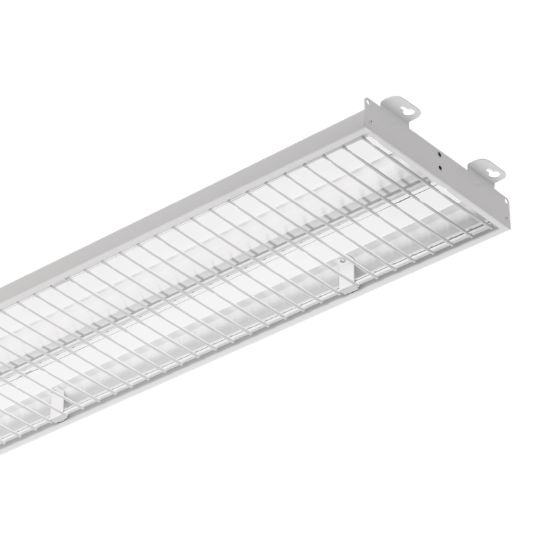 Aparelho de iluminação equipado com grelha pintada em branco, para iluminação de ginásios, constituído por: