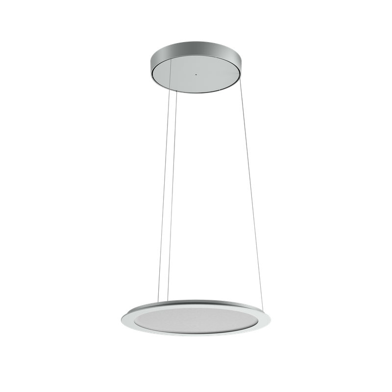 - Com cabos em aço (1,5 m) e cabo de alimentação transparente para suspensão ao teto